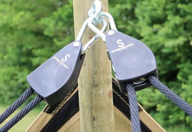 Rope Ratchet-spännaren (1/2″) innehåller två karbinhakar och 400 cm rep. Var och en har en draghållfasthet på 250 kg. Kort sagt, den är oförstörbar.