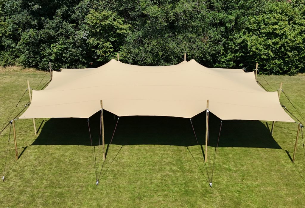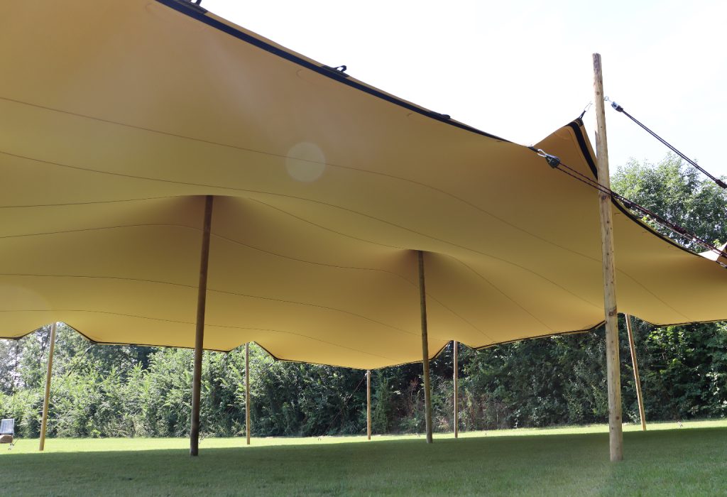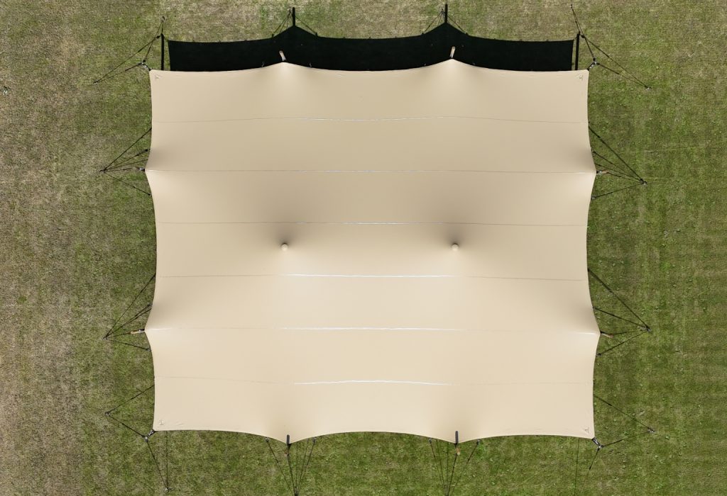 Tack vare en innovativ tillverkningsprocess med sydda sömmar är våra stretchtält helt vattentäta och exceptionellt hållbara. Detta skyddar dina gäster från regn, vind och andra element, så att de kan njuta av en oförglömlig upplevelse under alla förhållanden. De vattentäta sömmarna är otroligt starka och har ett extra skyddande lager som garanterar år av vattentäthet.